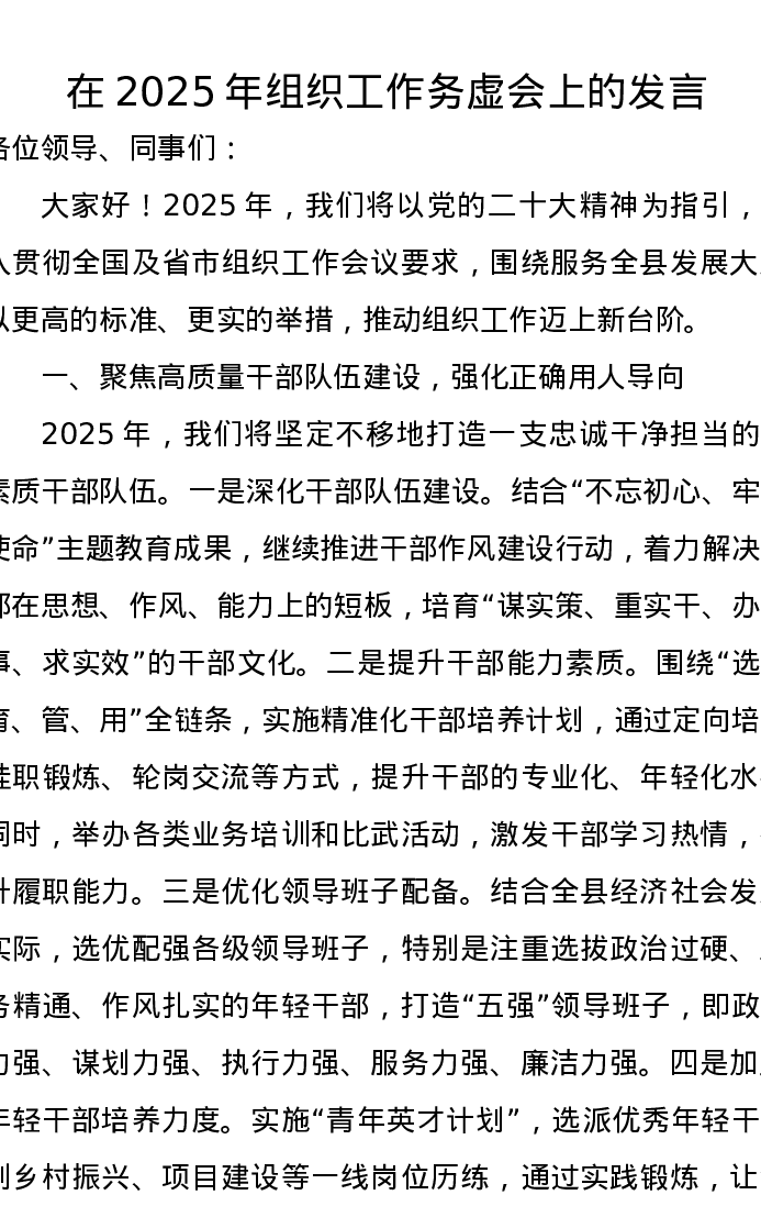 在2025年组织工作务虚会上的发言