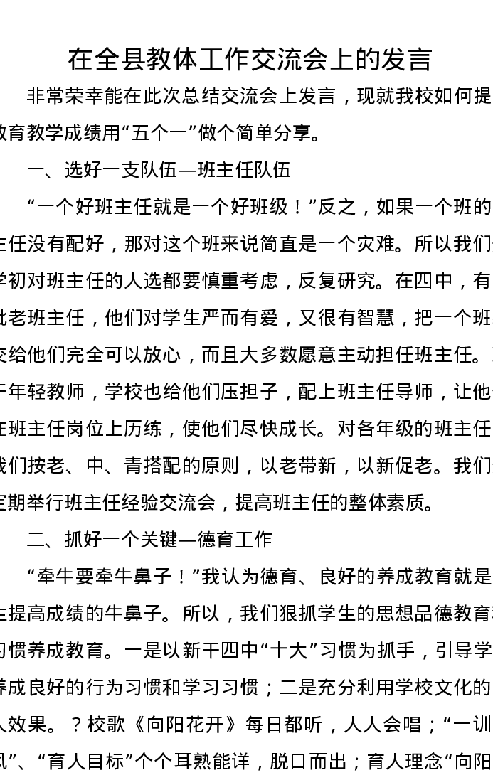 在全县教体工作交流会上的发言