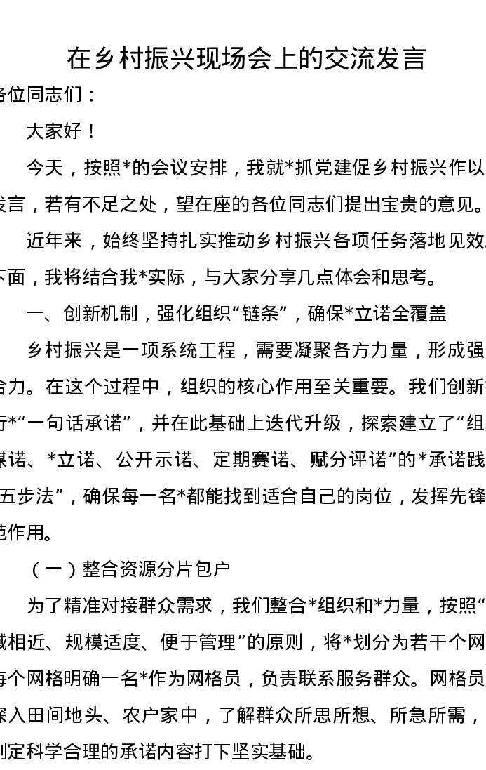 在乡村振兴现场会上的交流发言