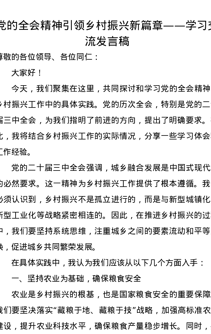 党的全会精神引领乡村振兴新篇章——学习交流发言稿