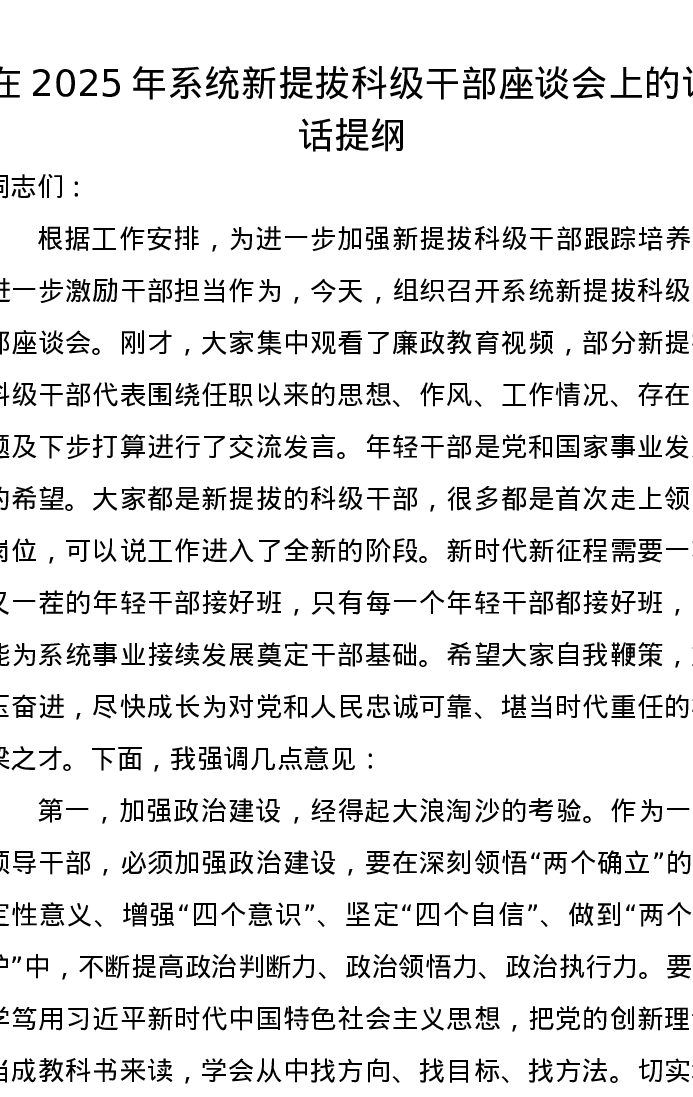 在2025年系统新提拔科级干部座谈会上的讲话提纲
