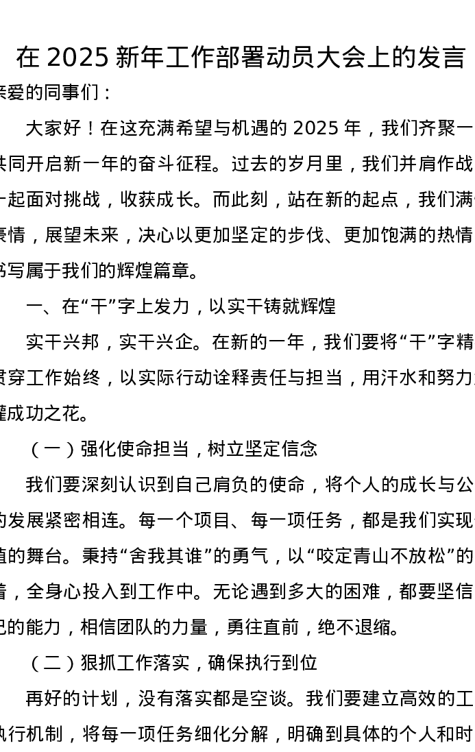 在2025新年工作部署动员大会上的发言