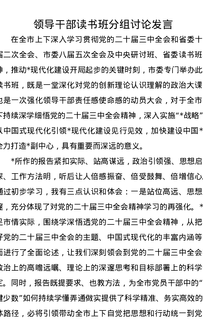 领导干部读书班分组讨论发言