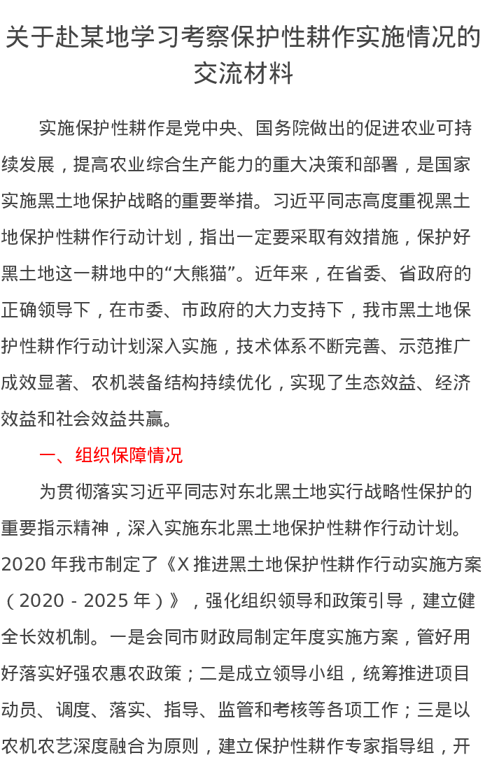 关于赴某地学习考察保护性耕作实施情况的交流材料