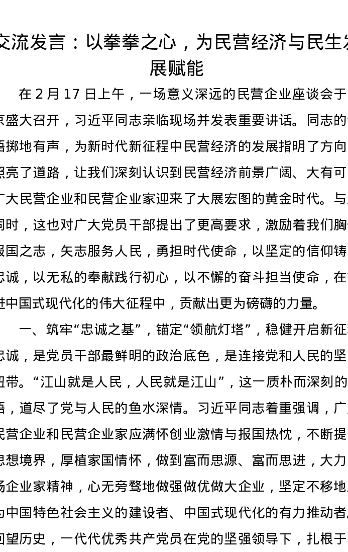 交流发言:以拳拳之心,为民营经济与民生发展赋能