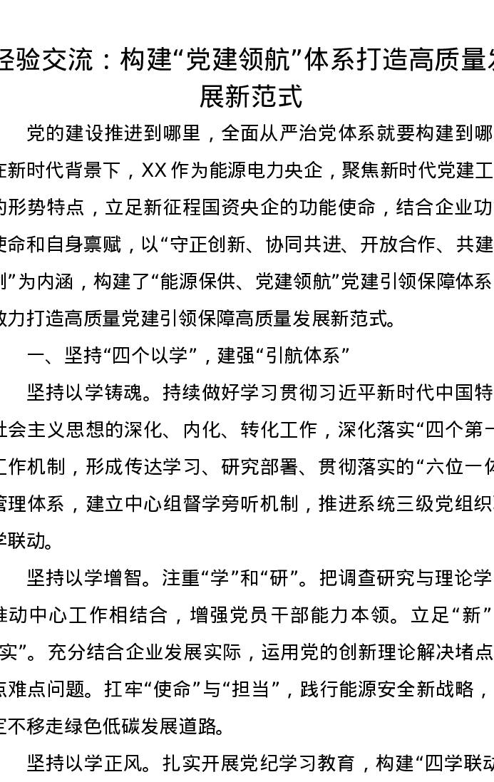经验交流:构建“党建领航”体系 打造高质量发展新范式