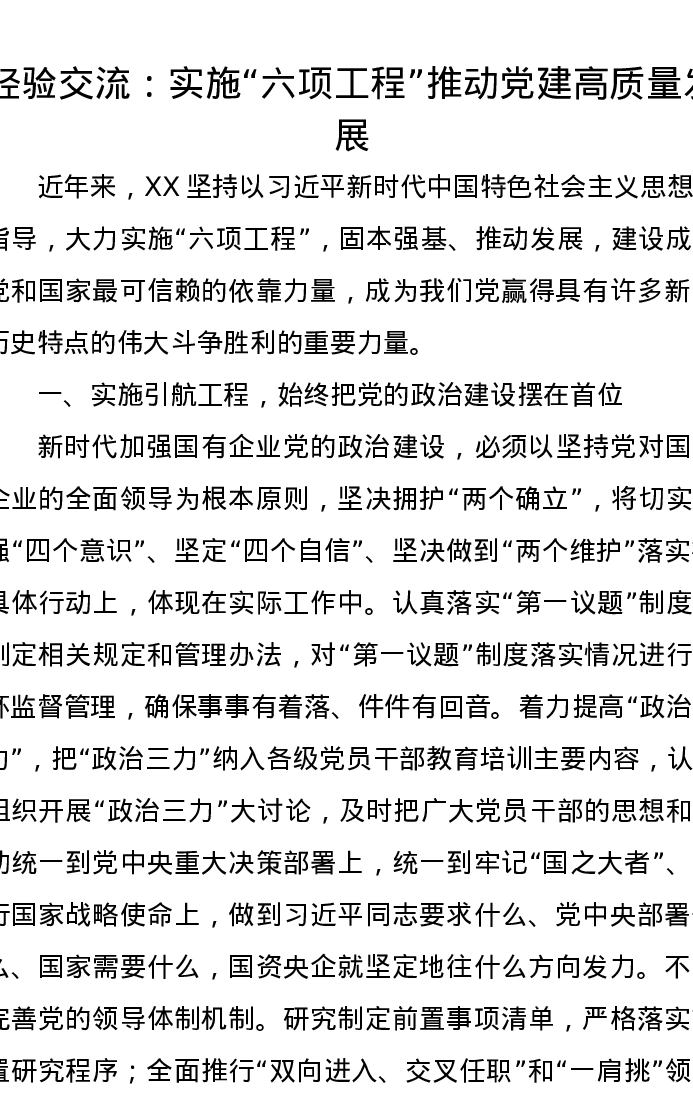 经验交流:实施“六项工程”推动党建高质量发展