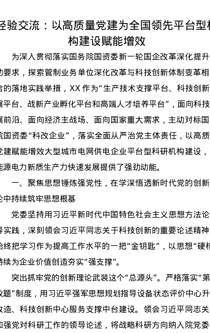 经验交流:以高质量党建为全国领先平台型机构建设赋能增效